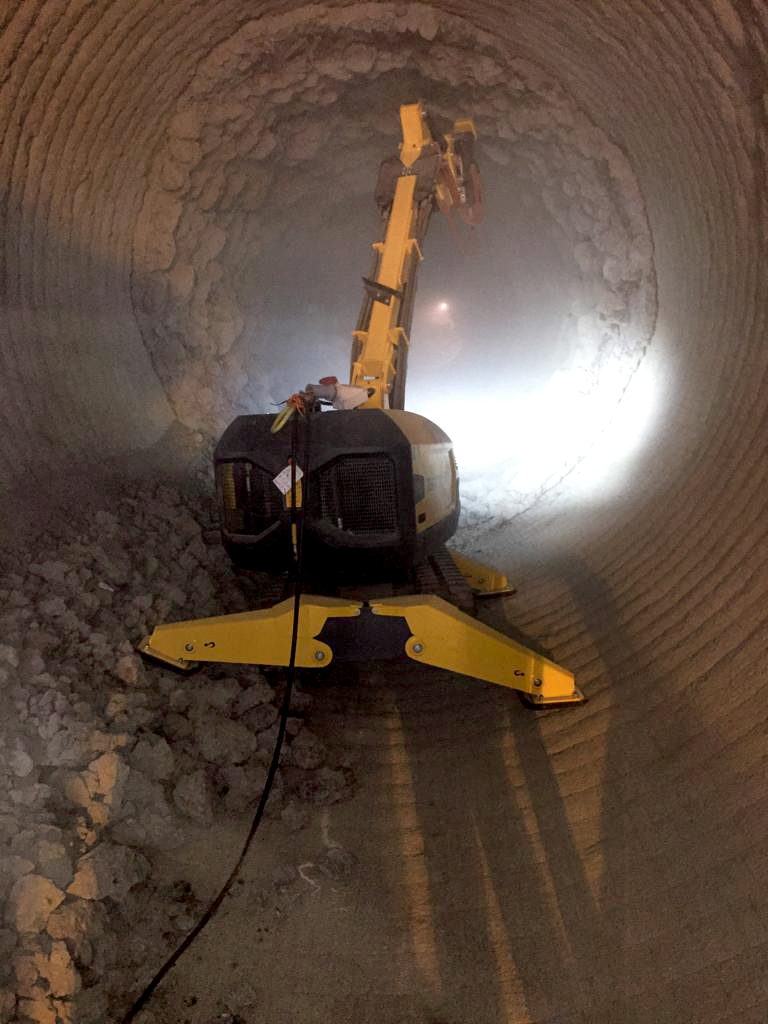 The Brokk robot boasts excellent stability in all directions and features an easily adjustable breaker frequency, ensuring precise operation without damaging the shell or lining. Its three-part arm system provides exceptional flexibility and reach, requiring less repositioning than conventional excavators.